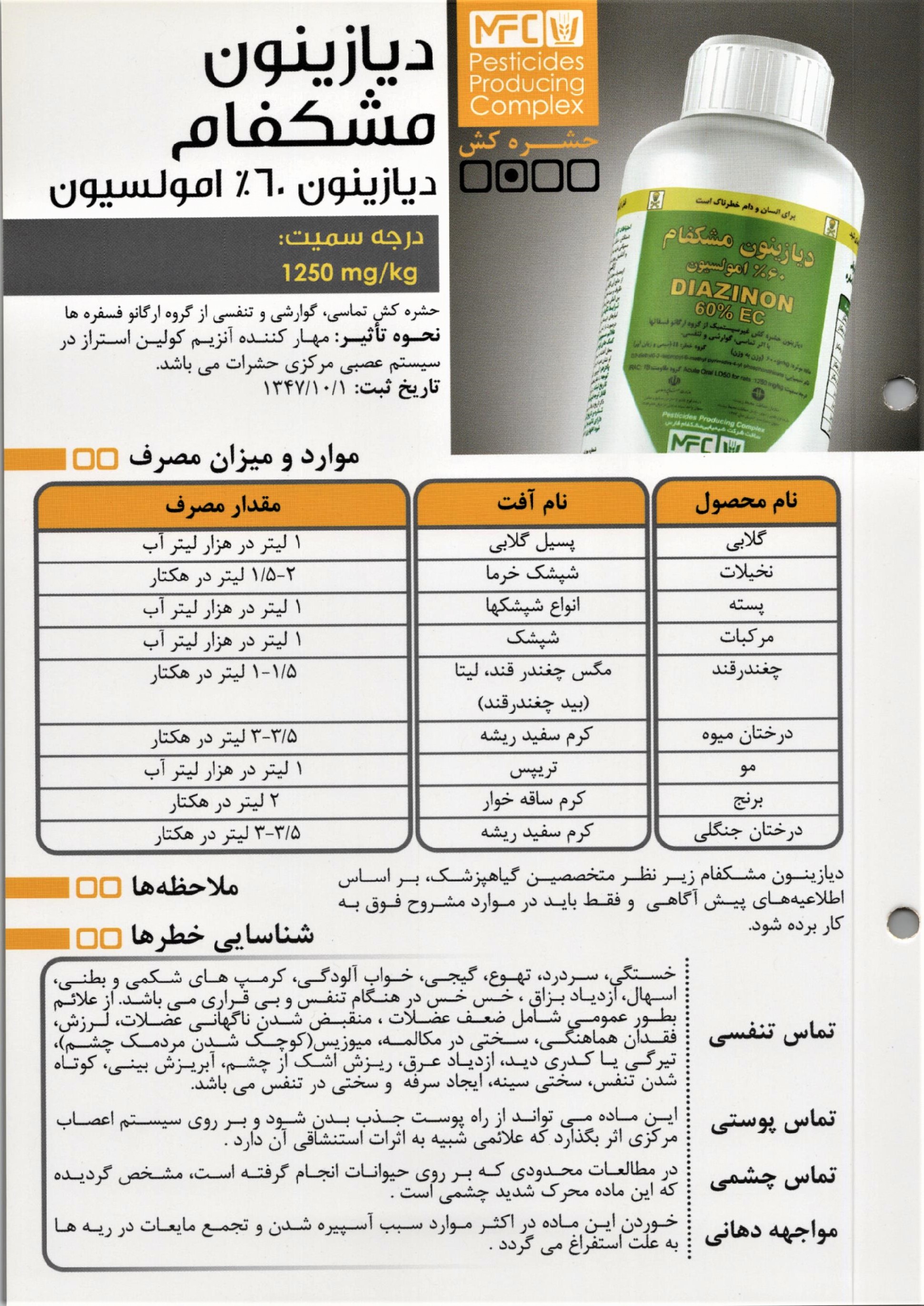 دیازینون 100 میلی لیتری مشکفام فارس دیازینون 100 میلی لیتری مشکفام فارس