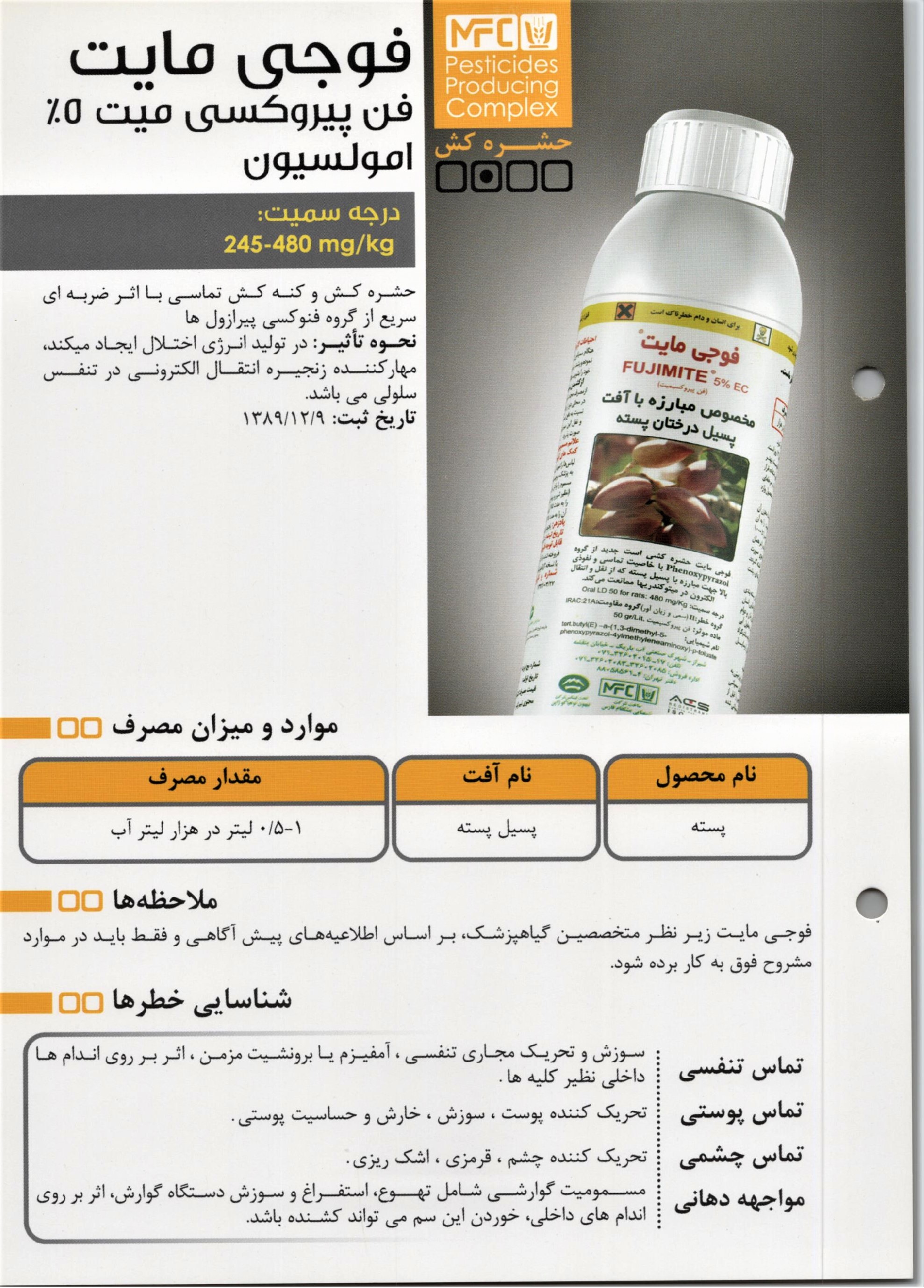 فن پیروکسی میت یا ارتوس سوسپانسیون مشکفام فارس ، کنه کش تماسی با اثر ربه ای سریع از گروه پیرازول ها فن پیروکسی میت یا ارتوس سوسپانسیون مشکفام فارس ، کنه کش تماسی با اثر ربه ای سریع از گروه پیرازول ها